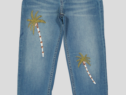 JEAN ENFANT BLEU A JAMBES FUSELEES,BRODE