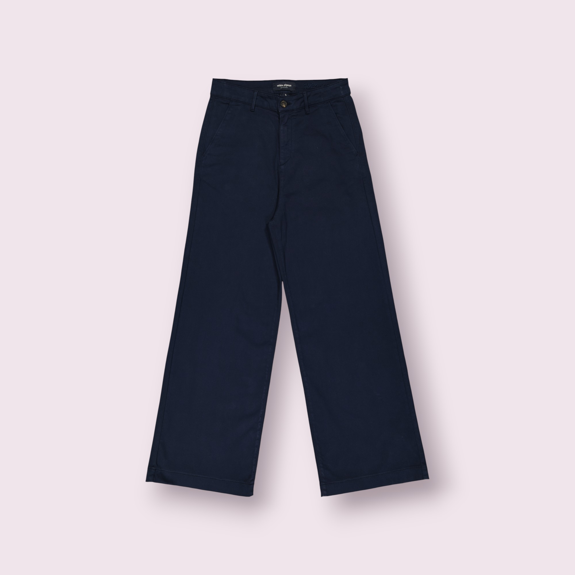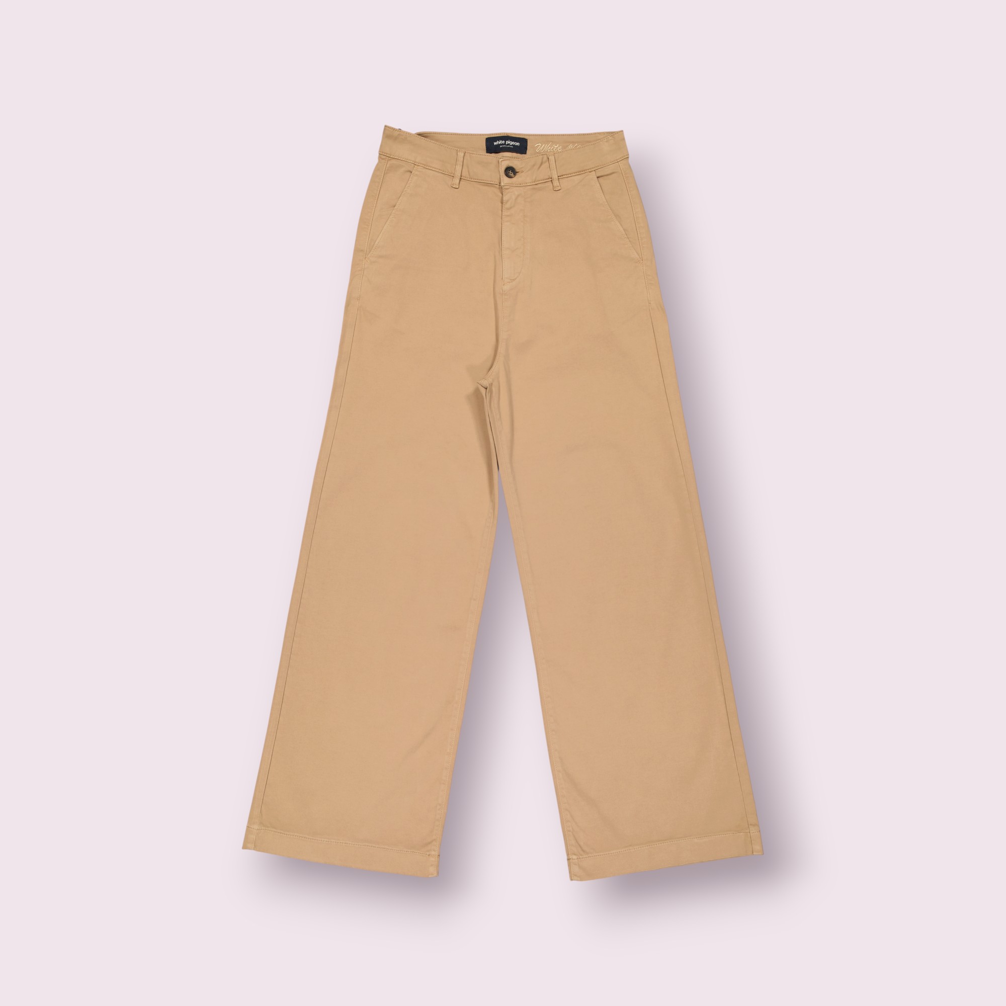 Un pantalon chino femme à coupe large est un bas polyvalent qui combine confort et style décontracté chic , il est fabriqué principalement en coton doux avec une petite proportion d’élasthanne agréable au toucher , respirant et légèrement élastique, sublimé par une broderie raffinée du nom de la marque sur la ceinture, l’entrée de poche est délicatement ornée du logo brodé apportant une touche distinctive et sophistiquée .