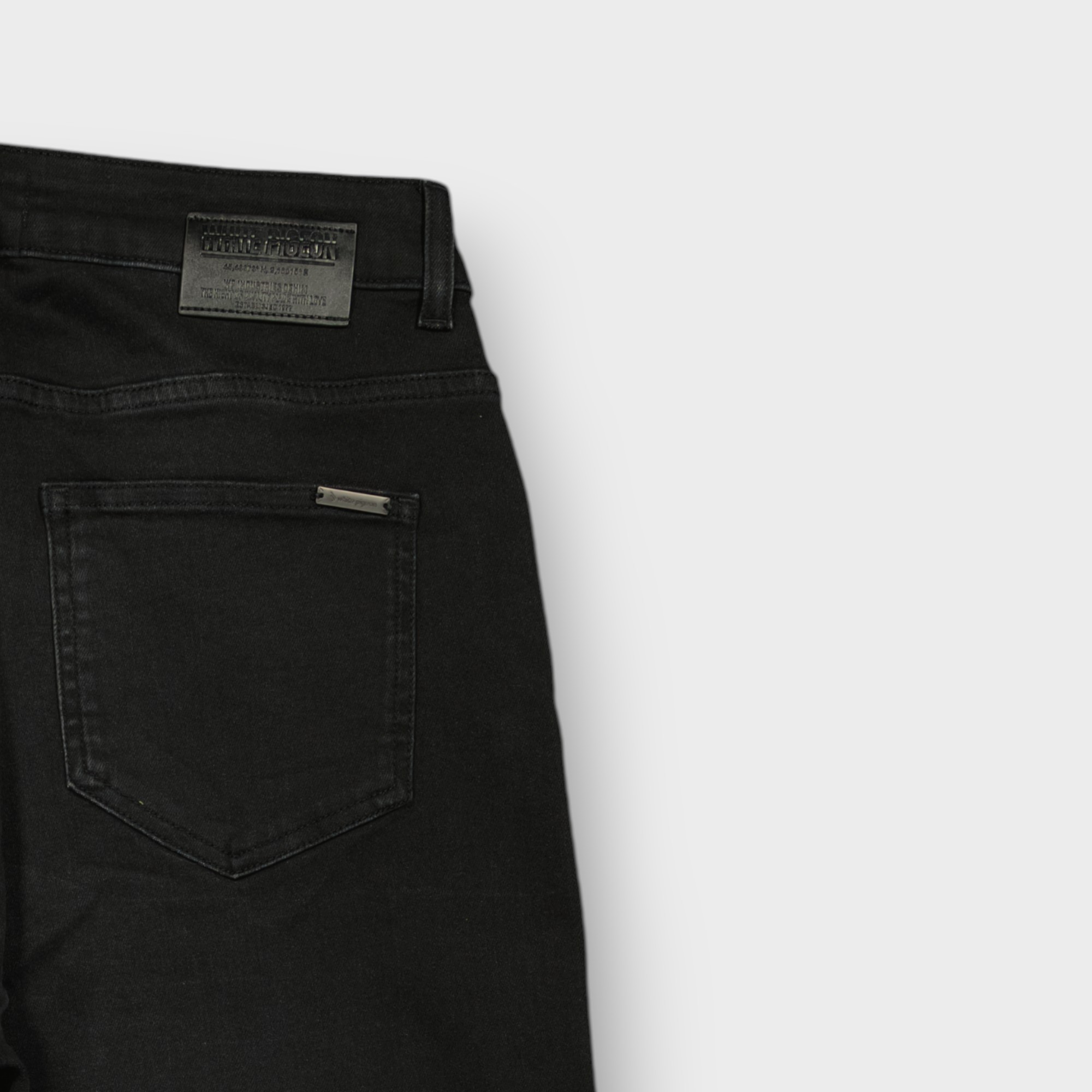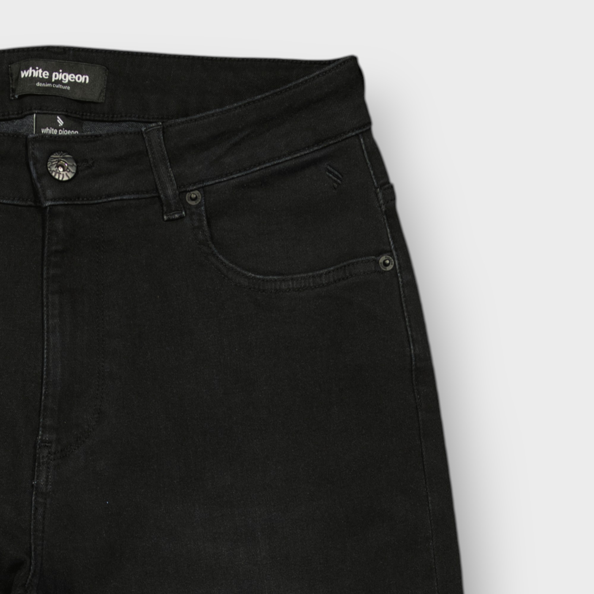 Optez pour le jean noir femme à coupe straight qui allie style et confort avec sa coupe classique et polyvalente confectionné en tissu denim stretch noir doux et résistant , il épouse subtilement les formes tout en assurant liberté de mouvement ,la broderie « white pigeon « placé sur la ceinture donne une touche raffinée .parfait avec une chemise ou sweat molletonnée de notre marque pour un look casual chic et élégant .