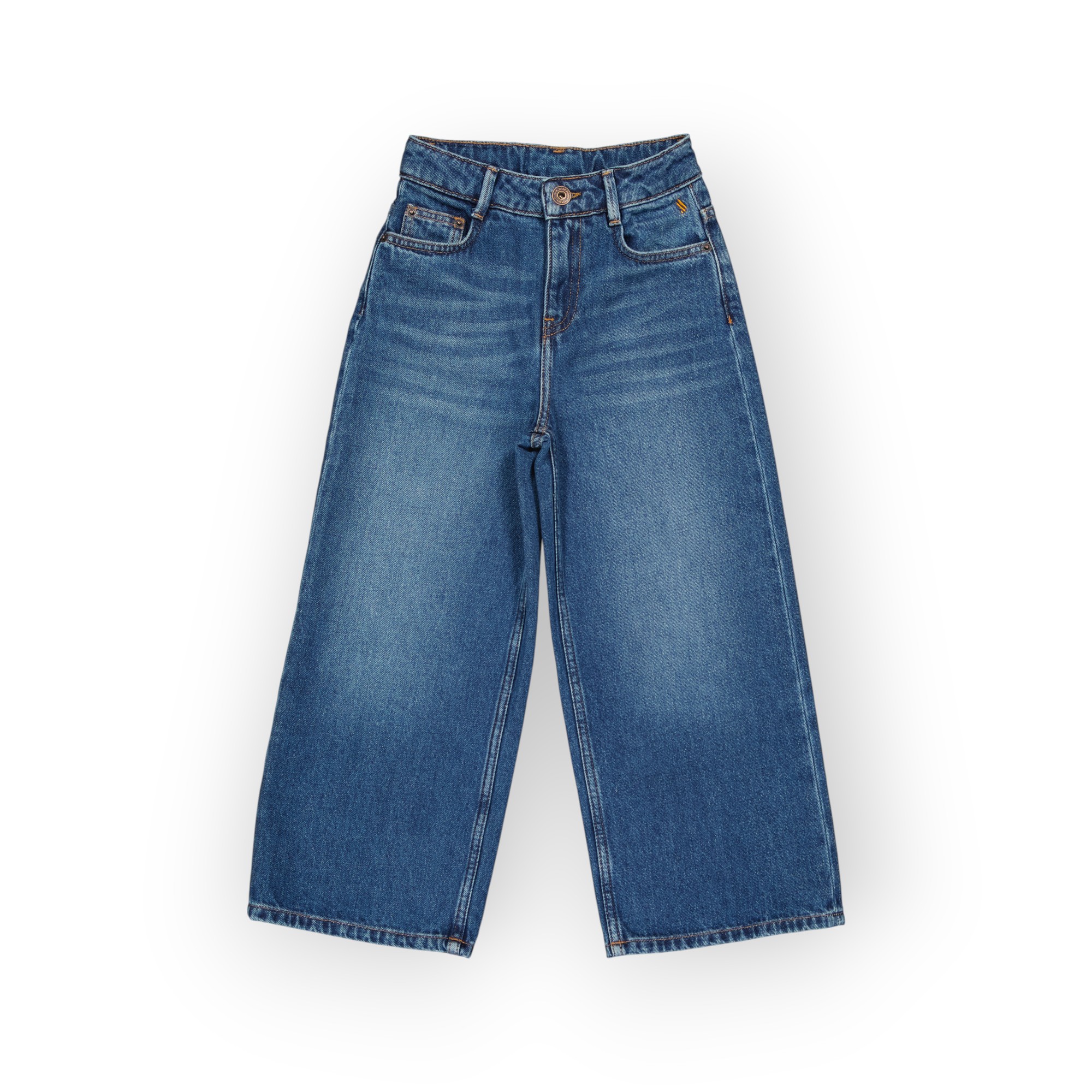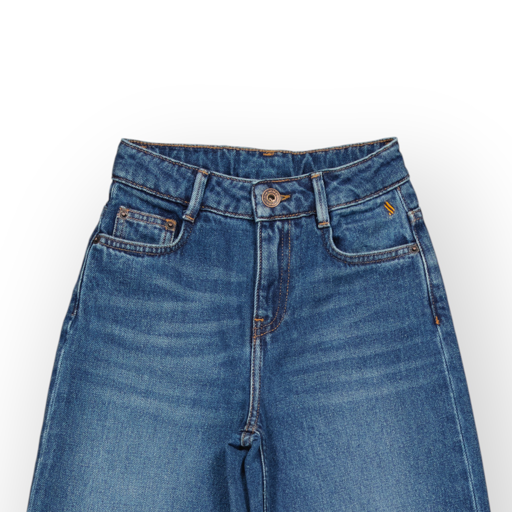 Ce jean large pour fillette allie confort et style décontracté , sa coupe ample et droite permet une grande liberté de mouvement idéale pour jouer ou se déplacer facilement .confectionnée en tissu denim rigide 100 % coton .