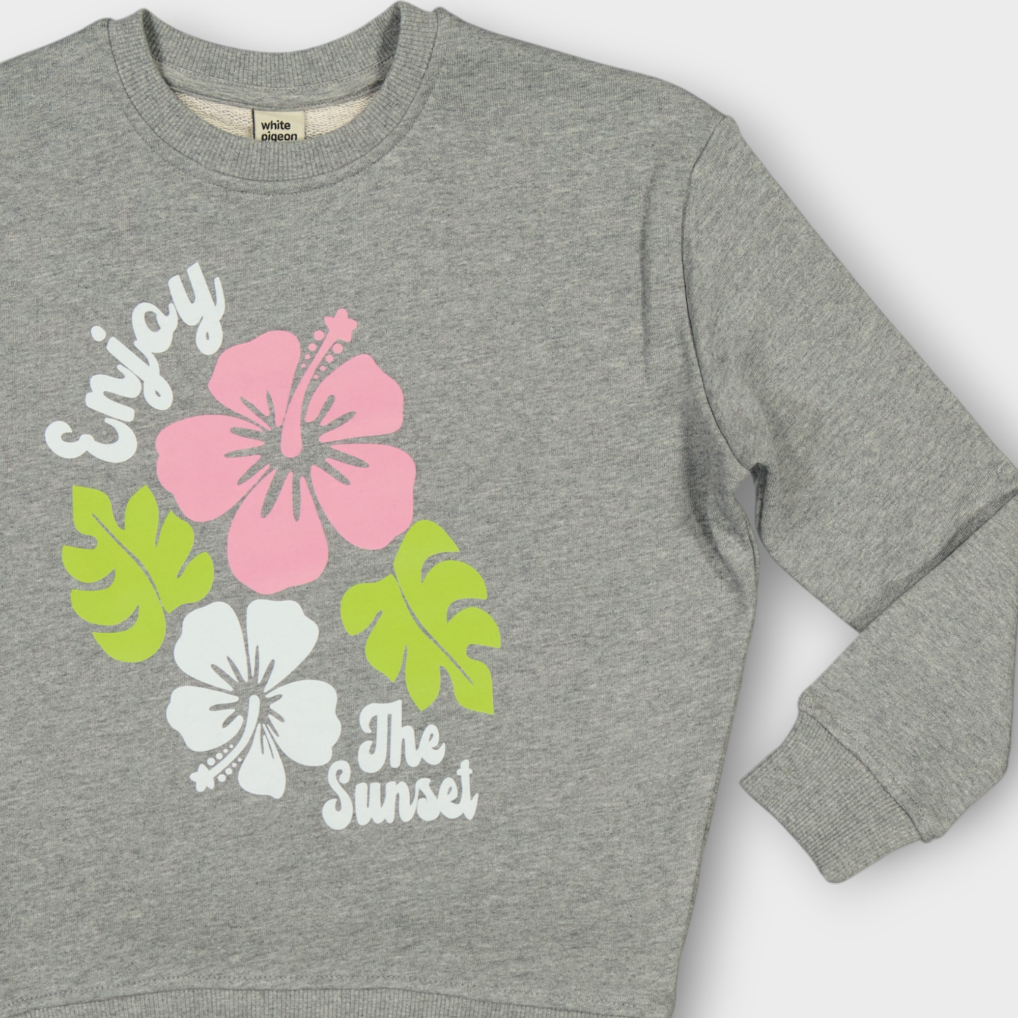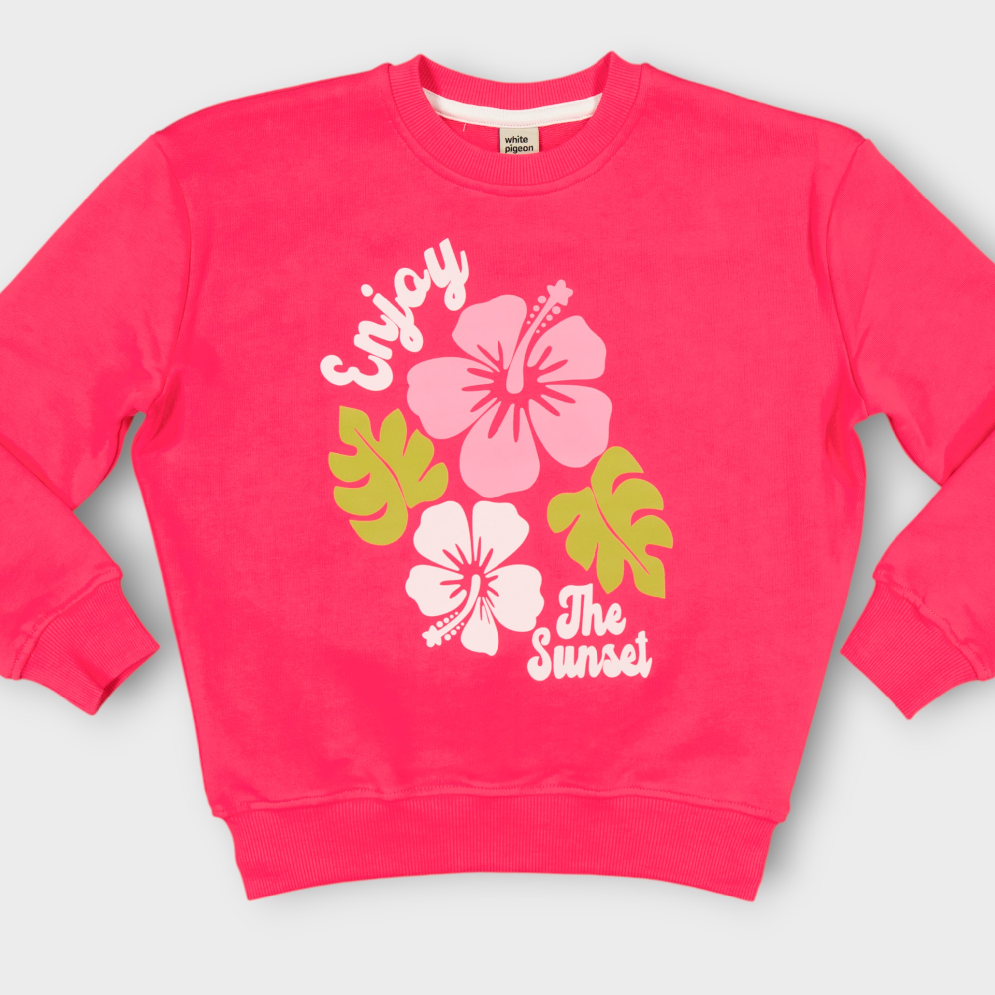 Sweat T-shirt Col rond en molleton 100% coton orné une impression représentant un bouquet de fleurs sur le devant doux et confortable idéal pour le quotidien .Sa coupe classique assure une grande liberté de mouvement tandis que le col rond et les finitions soignées aux poignets et à la base garantissent un bon maintien ,facile à enfiler et agréable a porter ce sweat est parfait pour l’école, les sorties ou les moments de tente.