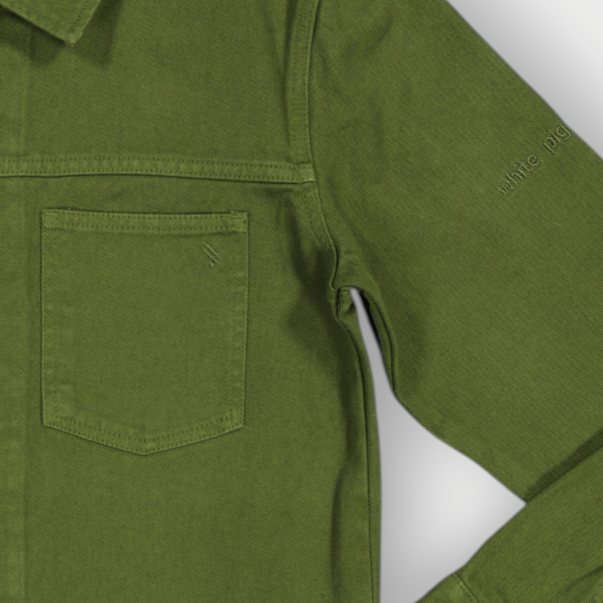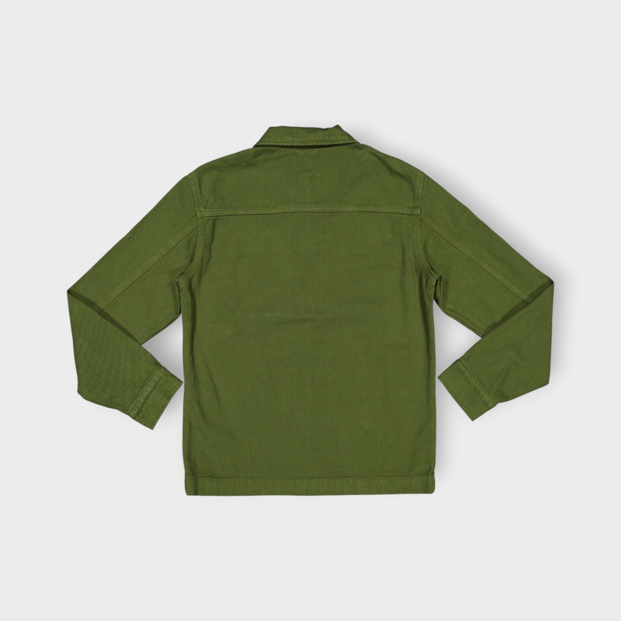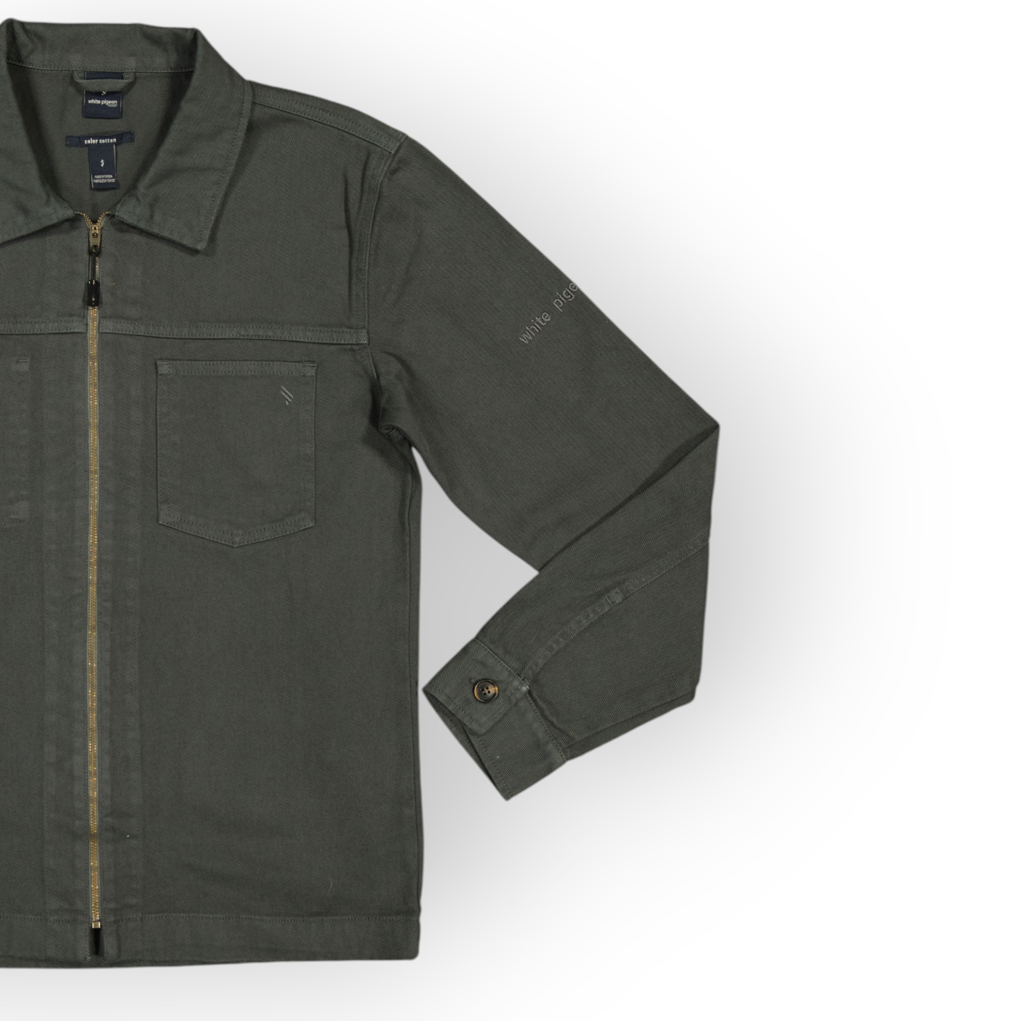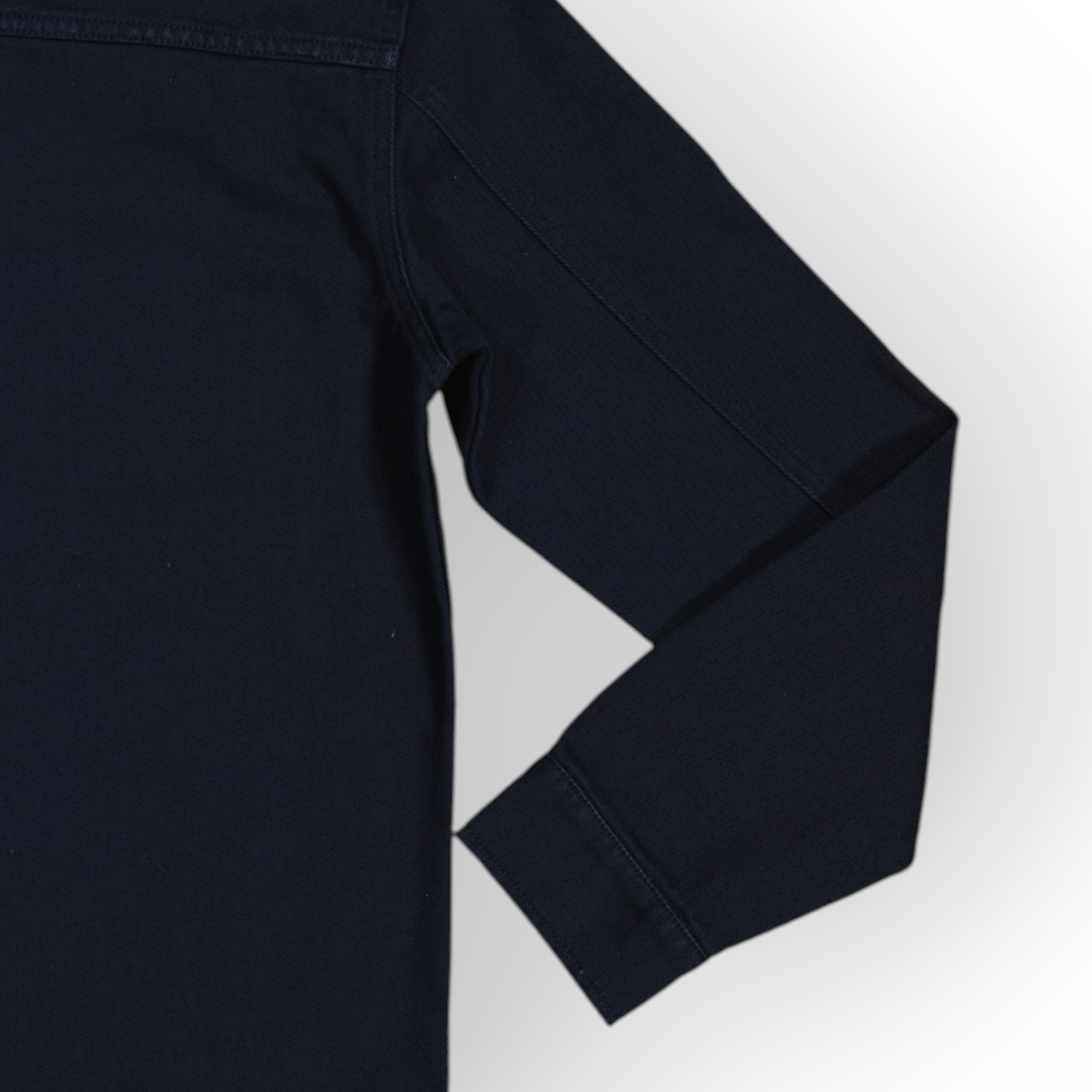 Surchemise coupe décontractée confectionnée avec tissu coton stretch. Col à revers et manches longues avec poignets à bouton. Détail de poche plaquée sur la poitrine. Effet délavé. Fermeture frontale avec fermeture éclair.